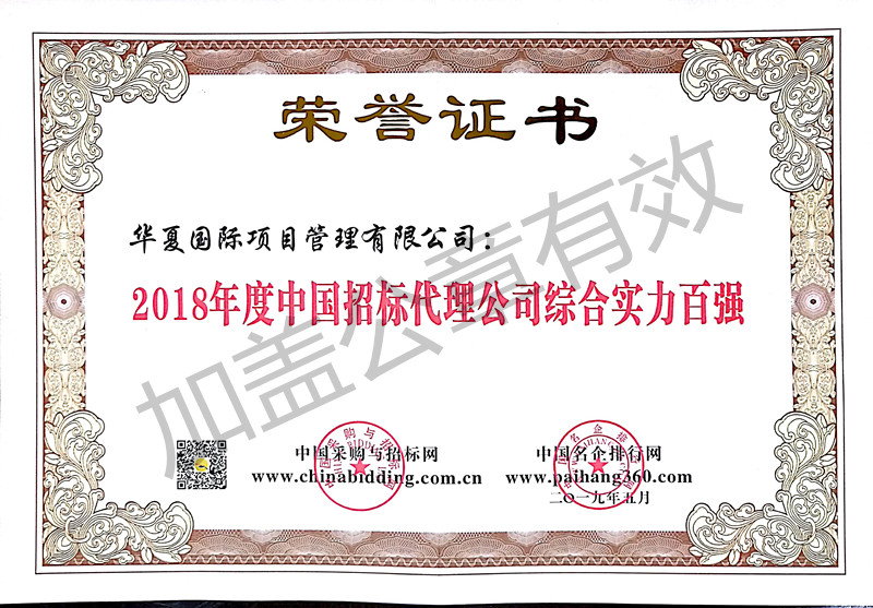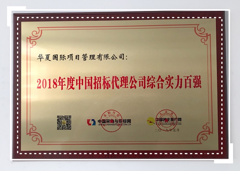2019年5月,華夏國(guó)際項(xiàng)目管理有限公司在全國(guó)招投標(biāo)領(lǐng)域年度聚焦評(píng)價(jià)推介活動(dòng)中榮獲“2018年度中國(guó)招標(biāo)代理公司綜合實(shí)力百?gòu)?qiáng)”。全國(guó)招投標(biāo)領(lǐng)域年度聚焦評(píng)價(jià)推介活動(dòng)由中國(guó)采購(gòu)與招標(biāo)網(wǎng)、中國(guó)名企排行網(wǎng)于2007年發(fā)起,至今已連續(xù)舉辦13屆,已成為全國(guó)招投標(biāo)領(lǐng)域的典范與風(fēng)向標(biāo)。