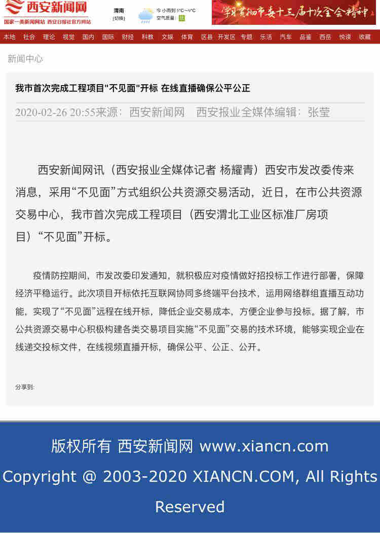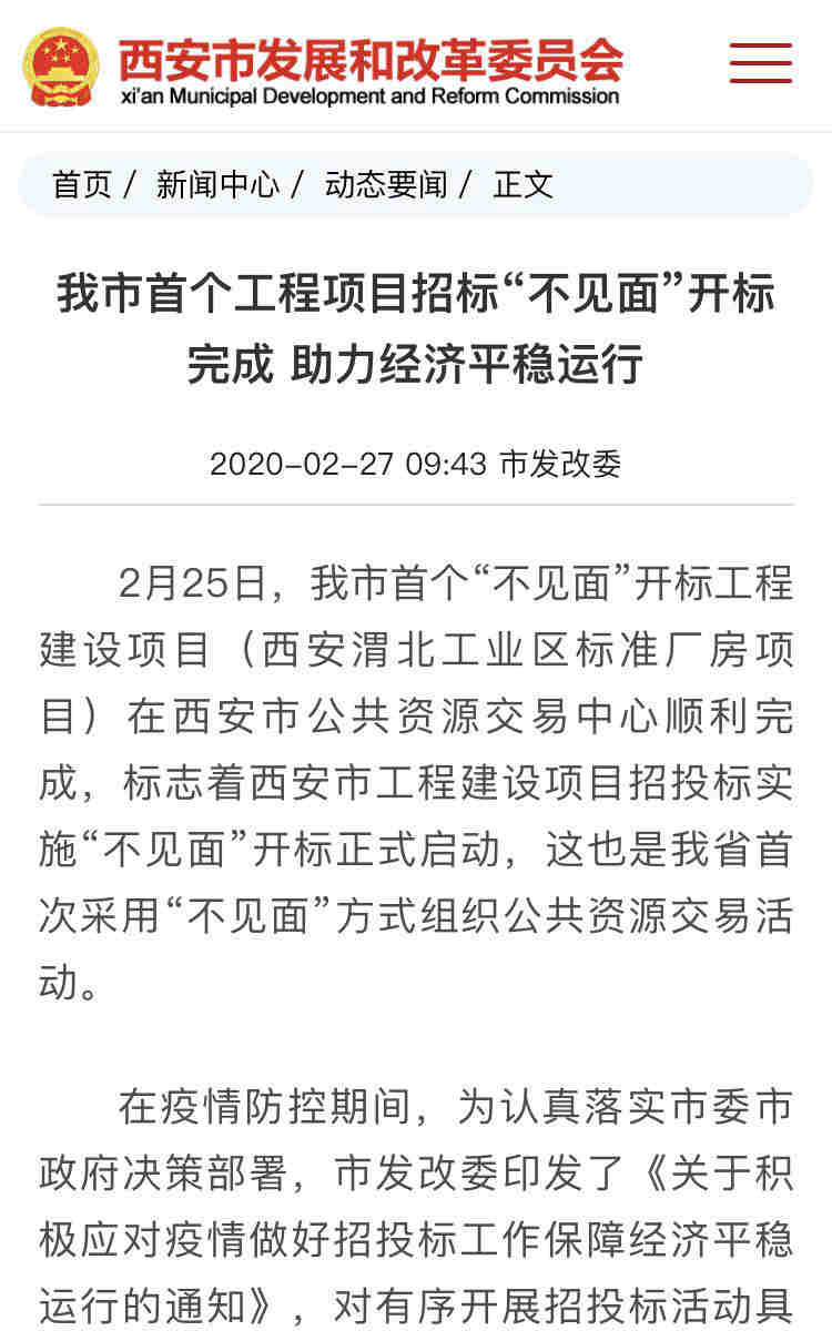西安市首個”疫期不見面,服務(wù)不中斷”工程項目開標
